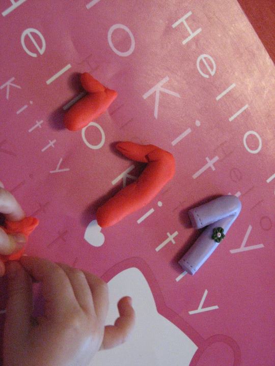 La prima ora a diminetii, M. a facut cunostinta cu cifra 1 (facuta de mami din argila polimerica). A fost atat de fericita, incat a simtit nevoia sa o anunte pe buni de eveniment (si, ca sa fie sigura, o si suna, ii si “scrie pe net” :))))))