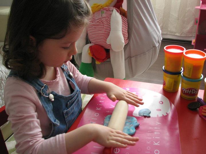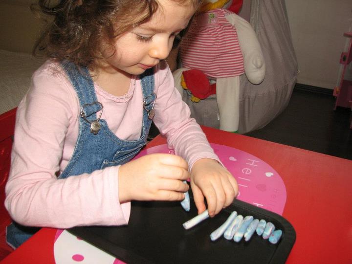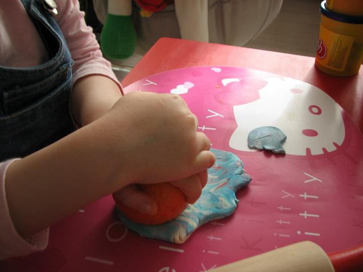 Si am incheiat activitatea cu bilute din plastilina, tot pe marimi diferite (a fost interesant sa observam care este mai mare, care este mai mica etc etc)