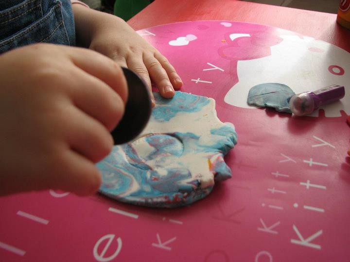…prin presarea unei portocale direct pe plastilina (a fost interesant sa observam si textura imprimata)…