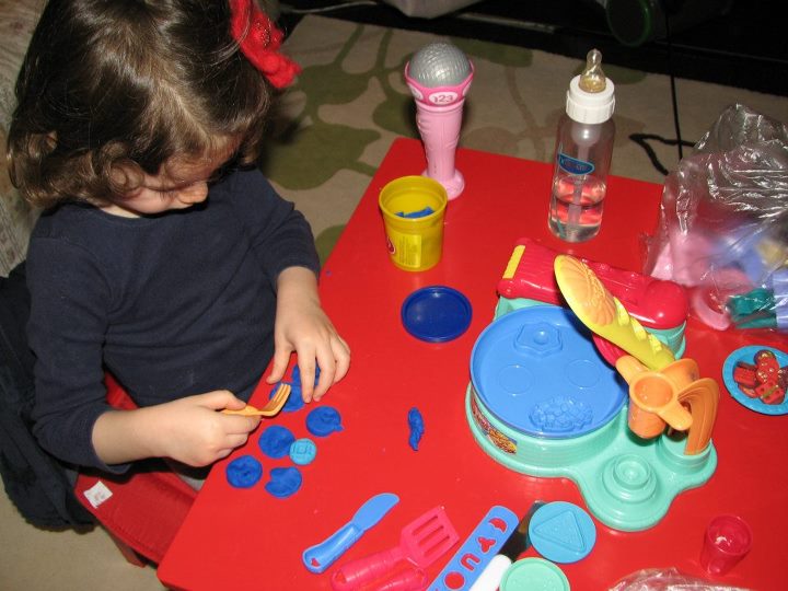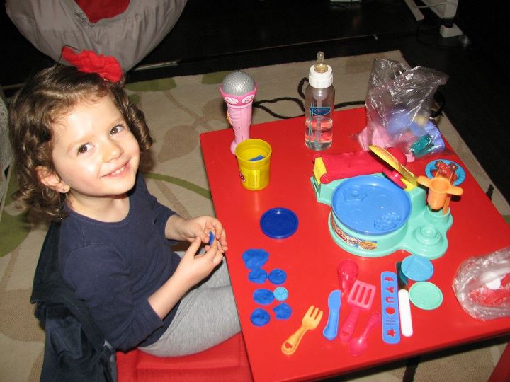 Intr-o seara, pe cand pregateam baita ei, M. mi-a spus ca are “un plan”. Ei, cand spune ea asa ceva, trebuie sa pregatesc rapid aparatul de fotografiat…stiu ca va urma ceva ce tb sa ii ramana amintire pe cand va creste. Si…asa a fost! Din plastilina a facut “un pandant”, pe care l-a si aplicat pe pieptul lui Fifi, dupa care s-a plimbat mandra-foc cu ea prin casa!