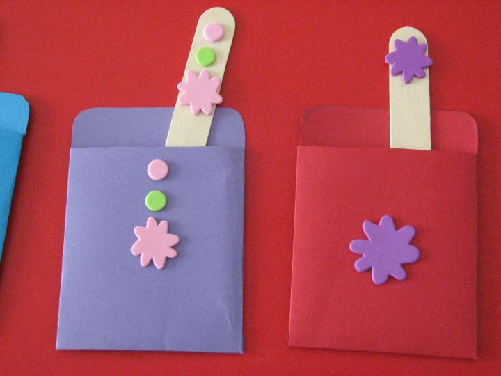 Acest joc se numeste “Shape pocket matching” – am confectionat “buzunarase” colorate, pe care am lipit un “pattern”, un tipar din forme diverse, iar pe betigase de inghetata (le gasiti in magazinele de hobby) am refacut fiecare dintre tipare. In forma aceasta am descoperit ca pentru M. a fost prea simplu (intentionez sa fac si o formula pentru copilasi de varsta ei).