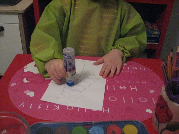 Puteti sa trasati mai intai un contur sau sa aplicati direct lipici in forma pe care doriti sa o ia “opera”.