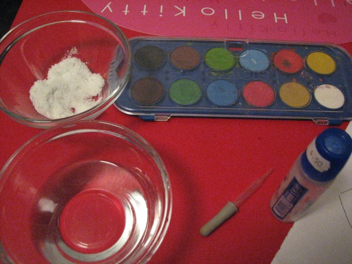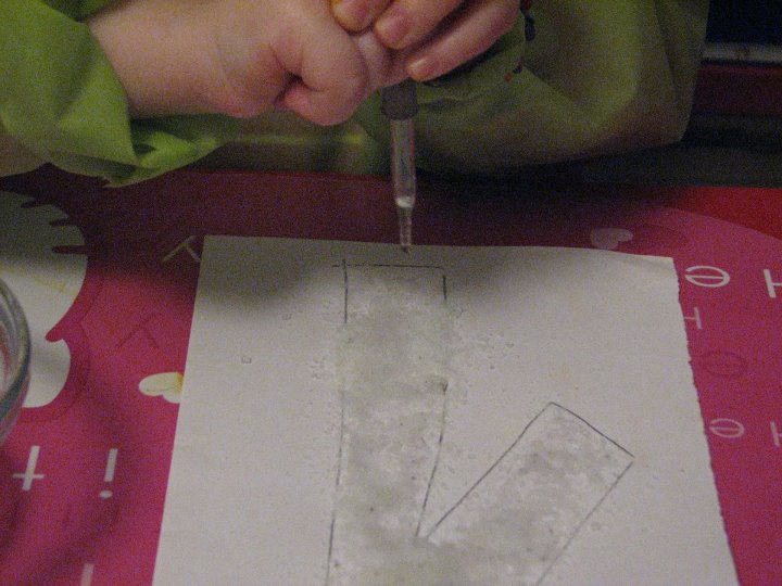 Cu pipeta se “umezeste” sarea (va absorbi asa de frumos culoarea, ulterior)…