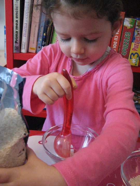 Ieri am bifat doua activitati de tip Montessori – sensorial, foarte bune pentru dezvoltarea motricitatii fine, dar nu numai. De-abia am reusit sa co conving pe M. ca mai avem si alte lucruri de facut pe ziua respectiva…